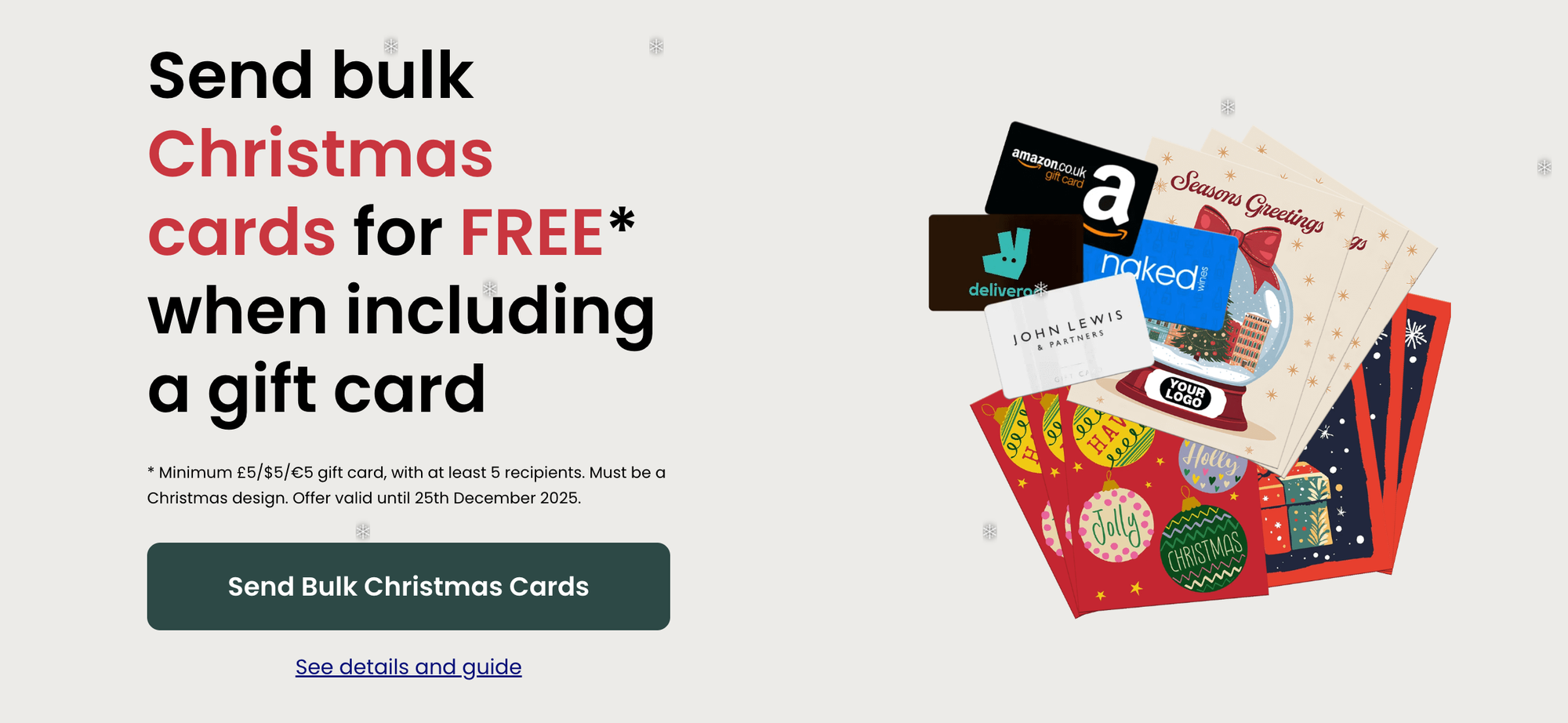 This year, we're offering a free option to send Christmas Cards and gift card to all your employees or clients. To qualify, you must meet the following criteria: